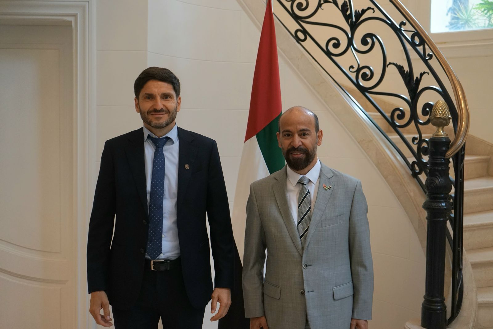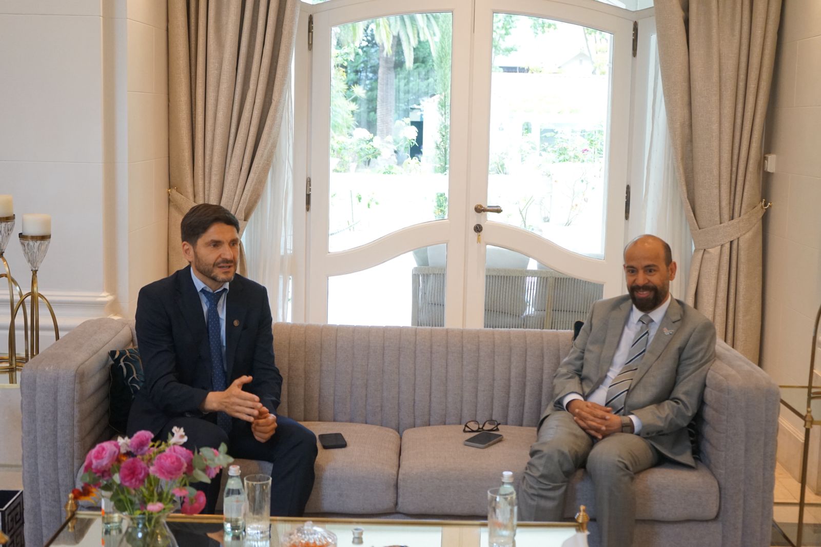 Con el fin de afianzar las relaciones bilaterales y seguir impulsando las exportaciones santafesinas, este jueves el gobernador Maximiliano Pullaro se reunió con el embajador de Emiratos Árabes Unidos en Argentina, Saeed Abdulla Saif Joula Alqemzi. “Fue una reunión valiosa para fortalecer las relaciones de la Provincia de Santa Fe con Emiratos Árabes Unidos. Empezamos a delinear una hoja de ruta, una agenda estratégica común”, destacó el gobernador una vez finalizado el encuentro. Y agregó: “Se analizaron posibles inversiones de interés para Santa Fe y distintas alternativas para incrementar las exportaciones. Santa Fe tiene todo lo que el mundo necesita, por eso desde el primer día de gestión trabajamos para seguir abriendo mercados para nuestra producción”.