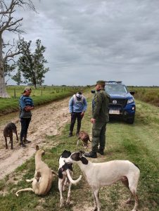 Durante la realización de patrullajes preventivos por zonas rurales realizaron identificación de 6 masculinos los cuales se encontraban realizando caza deportiva en caminos públicos, sin licencia habilitante, cazando especies vedadas, con la