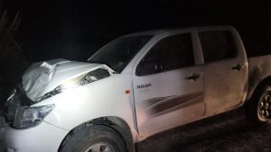 El segundo accidente vial protagonizado por una Camioneta Toyota Hilux y un animal vacuno se dio este domingo 16 de abril sobre Ruta Provincial Nº13 horas más tarde que allá ocurrido otro siniestro similar sobre Ruta Nacional 98 a pocos kilómetros de lugar.