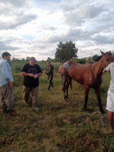 Los Pumas de Sección N°19 Vera colaboraron en el rescate y atención veterinaria de un equino sexo hembra abandonado en un campo a la vera de la ciudad.