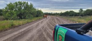también observaron a la vera del camino un (01) animal equino, carente de medidas de seguridad que restrinjan su libre desplazamiento, sin la presencia de cuidador/es, generando un peligro inminente para los transeúntes; notificaron a un ciudadano mayor de edad, propietario del semoviente por “Infracción al Art. 98 de la Ley Pcial N° 13.774” (omisión de custodia animal), seguidamente siendo entregado el animal, bajo depositario judicial.