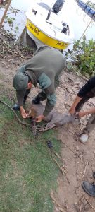 “Los Pumas”, con asiento en la localidad de Constituyentes, intentan auxiliar un Aguara Guazú, tratando de evitar la crueldad del hombre.