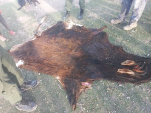 Decomisaron un total de (40) Kg de productos cárnicos de origen Vacuno y (01) cuero con su respectiva marca, continuando con su desnaturalización.