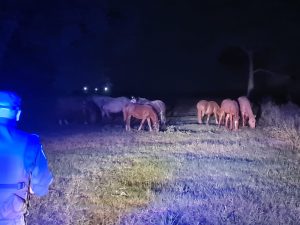 Efectivos Rurales de las localidades antes mencionadas, realizando patrullajes preventivos, por zona rural de sus respectivas jurisdicciones, observaron a la vera del camino doce (12) animales equinos, carentes de medidas de seguridad que restrinjan su libre desplazamiento, sin la presencia de cuidador/es, generando un peligro inminente para los transeúntes; personal actuante procedió a la notificación de tres (03) ciudadanos mayores de edad, por “Infracción al Art. 98 de la Ley Pcial N° 13.774” (omisión de