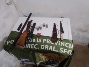 Efectivos de la Seccion Nº19, realizaron identificación de dos motocicletas, sus ocupantes tres sujetos mayores de edad, quienes circulaban por zona rural de la mencionada localidad; seguidamente constataron que trasladaban una (01) escopeta calibre 28, yuxtapuesta con dos gatillos, culata y chimaza de madera, cartuchos intactos; Un (01) cuchillo. una (01) linterna y una (01) vaina; procedieron a realizar secuestro preventivo de la totalidad de los elementos.