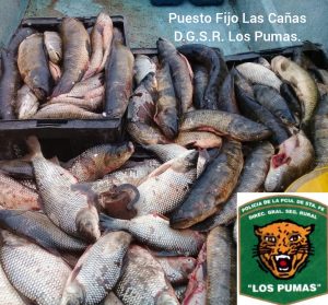 Personal Policial de la Dirección General Seguridad Rural Los Pumas de la localidad de Las Cañas decomisaron cerca de 200 especies ictícolas.