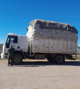 Personal de la Sección Nº 24 de la Dirección General de Seguridad Rural, con asiento en la localidad de Gato Colorado, actuaron en prevención mientras se encontraban realizando patrullaje preventivo por zona rural de su jurisdicción, lugar donde detuvieron la marcha de un camión, conducido por un ciudadano mayor de edad, quien transportaba carga de algodón, careciendo de documentación correspondiente para tal fin, motivo por el cual se le confeccionó acta por “Infracción al Art. 128 Inc. B de la Ley Pcial. N° 13.774” (tenencia y transporte de cereal y/o ganado en cantidad o calidad que no corresponda), en