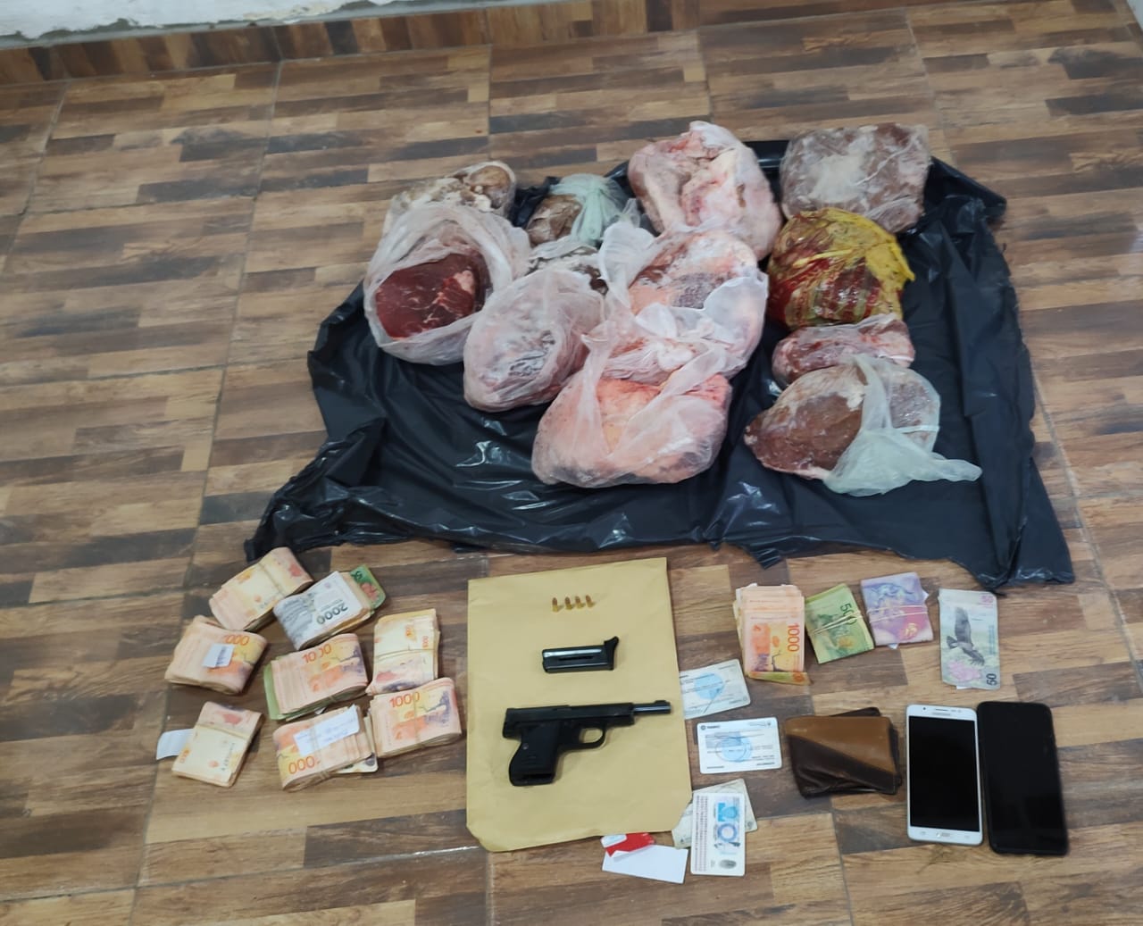 pesos argentinos, siendo un total de ($817,250) ochocientos diecisiete mil doscientos cincuenta pesos, quince kg de carne vacuna discriminados en distintos cortes cárnicos, dos celulares marca Samsung, una camioneta marca Ford color blanca, y una pistola calibre 22 junto a un cargador con cuatro municiones del mismo calibre intactas.