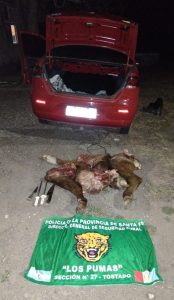 En este contexto, personal de la Guardia Rural Los Pumas, con asiento en la localidad de Tostado, mientras realizaban patrullajes preventivos por Ruta Nac. N°95, más precisamente a la altura del puente del Rio Salado, observaron a cuatro ciudadanos cargando bultos en un automóvil, marca Fiat Modelo Siena, al identificarse el personal policial, se dieron rápidamente a la fuga, luego a escasos metros lograron