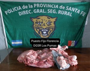 Realizando patrullajes preventivos, los efectivos de la Sección 21 de la DGSR “Los Pumas”, recibieron un llamado telefónico por parte de un masculino mayor de edad, solicitando la presencia del personal policial e informando haber presenciado la faena de un animal vacuno perteneciente a un ganadero de la zona