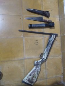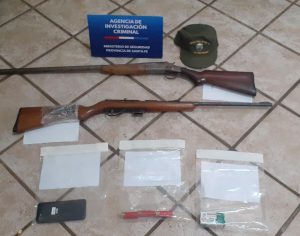 Personas, personal de la Comisaría 10ma, y bajo la supervisión presentes en el lugar fueron atendidos por un Sra. mayor de edad, quien interiorizada de la presencia policial, manifestó que su esposo se encentraba trabajando en un lote cercano, además puso en conocimiento que se encontraba padeciendo varios abusos de parte del mismo como violencias y privaciones. Seguidamente procedieron a la detención del ciudadano y dando cumplimento dicha medida Judicial, en el lugar secuestraron una escopeta calibre 16 con cartuchos intactos, una (01) carabina calibre 22 largo con 45 balas intactas y un teléfono celular. Se
