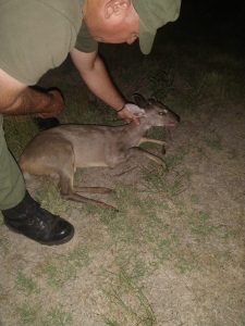 Personal del Destacamento de Arroyo Leyes, recibieron un llamado por parte de personal perteneciente a la Subdirección de Ecología del Ministerio de la Producción, quien da cuenta que en un domicilio ubicado en zona urbana de esa localidad se hallaba un animal silvestre; inmediatamente los efectivos se hicieron presentes en el lugar donde lograron observar, un animal silvestre de la especie Guazuncho, encontrándose en buen estado de salud; con los recaudos necesarios se logró su captura y posterior resguardo, se comunicaron con personal idóneo el cual dispone de que el animal sea llevado y liberado