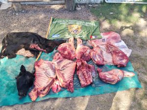 Rápidamente personal actuante con lo anoticiado al hecho llegaron a la finca de una persona mayor de edad y con previa autorización del mismo ingresaron a la casa a realizar una requisa, sin oponer reparo alguno, uniformados observaron en el interior de la finca, restos de animal vacuno, sin marca ni señal, aludiendo el masculino que la procedencia del animal fue vendida por un peón de dicho establecimiento, por la cantidad de ($91.000).
