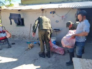 Progresivamente ante la irregularidad del caso personal actuante procede al secuestro preventivo del producto carneo. Siendo las 15.20 horas efectivos se trasladan al domicilio del peón y enterado de los pormenores del caso el mismo entrego de forma voluntaria el cuero del animal bovino.