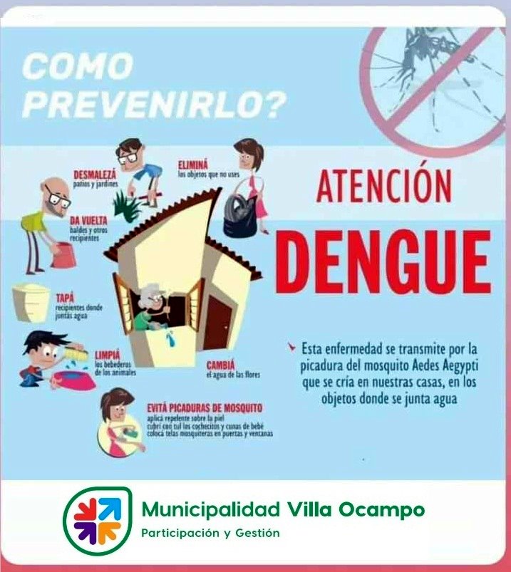 En el marco del plan de prevención para evitar la propagación del dengue y otras enfermedades transmitidas por el mosquito “Aedes Aegypti”, como el zika y la chikungunya, las Secretarías de Desarrollo Social y de Servicios Públicos de la Municipalidad de Villa Ocampo recomiendan a la comunidad mantener las medidas de descacharrización para eliminar los criaderos de mosquitos.