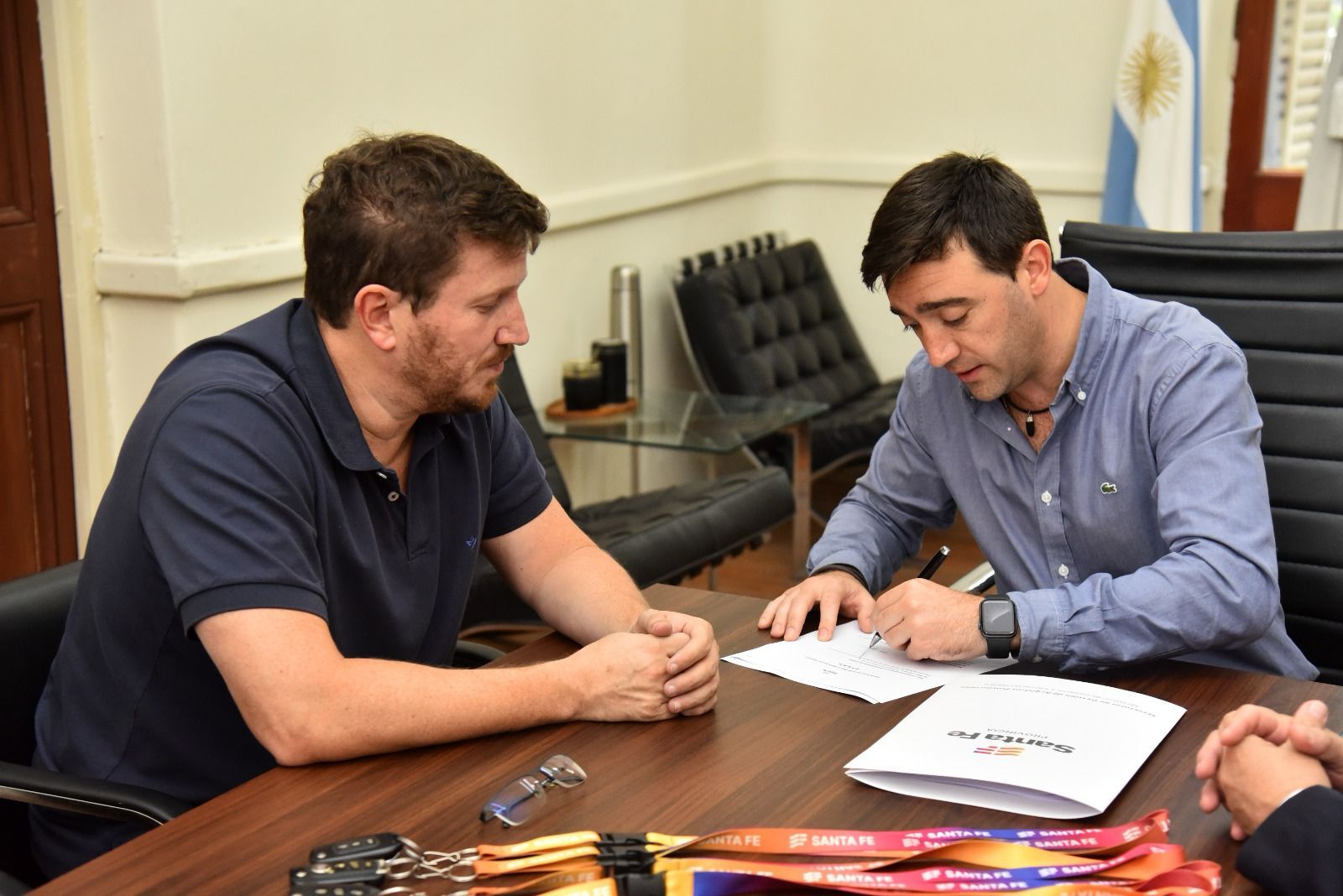 Se trata de ocho autos que se le quitaron a delincuentes y que se van a utilizar para la prevención de la violencia. De la firma del acuerdo participaron los secretarios provinciales de Seguridad Pública, Omar Pereira, y de Gestión de Registros, Matías Figueroa Escauriza, y el subsecretario de Intervención Federal de la Nación, Federico Angelini.