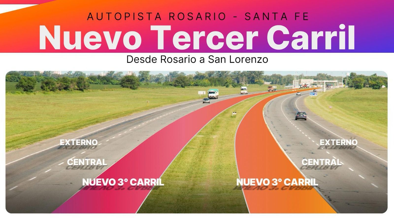 A partir de una inversión multimillonaria que el Gobierno de la Provincia ejecuta en el marco de Acuerdo Rosario, este lunes comenzará la construcción del tercer carril de la Autopista Rosario-Santa Fe. Se ejecutará en el tramo de 16 km entre la Av. Circunvalación de Rosario y el acceso a la ciudad de San Lorenzo.