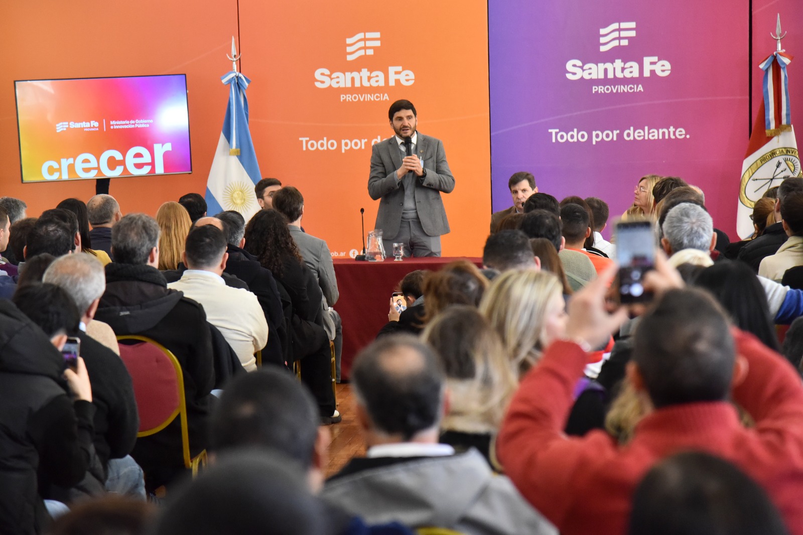 El gobernador Maximiliano Pullaro participó en Rosario del inicio del dictado de “Crecer-Capacita”, Escuela de Municipios y Comunas, un programa con el que se proyecta mejorar la calidad institucional y la gestión de los gobiernos locales a través de cursos de capacitación para autoridades locales. Las actividades comenzaron el martes en Santa Fe y continuaron este miércoles en Rosario con las clases del primer curso: “Líderes para la democracia local”, con contenido sobre competencias normativas, jurídicas, tributarias, financieras, presupuestarias, y de infraestructura y planeamiento urbano-ambiental en municipios y comunas.