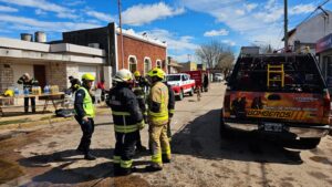 El hecho se produjo en el domicilio de un transportista, un galpón utilizado para guardar camiones. Según los primeros testimonios, una chispa generada durante trabajos con una moladora desencadenaron el incendio, que se propagó rápidamente y alcanzó la vía pública, afectando vehículos y viviendas cercanas.