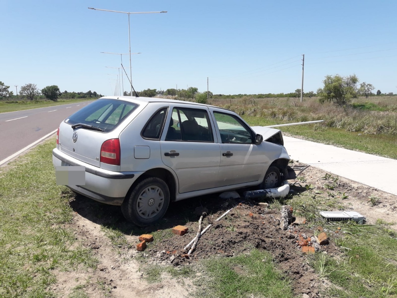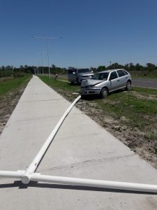 Arribados se corrobora lo anoticiado entrevistando a la ciudadana Z.B, mayor de edad quien se conducía un automóvil VW GOL, quien manifesto que sin intervención de terceros se descompenso y colisionó contra farola de alumbrado público. Fue trasladada en ambulancia del 107 de manera preventiva al Hospital Regional y se dio conocimiento al fiscal en turno Dr. Marichal.