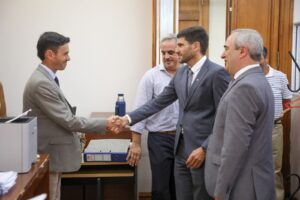 Domingo Rondina, fiscal de Estado de la provincia, fue el encargado de dar la bienvenida al mandatario provincial. En la ocasión, Pullaro recorrió las distintas oficinas de la dependencia y participó de la colocación de un cuadro del Brigadier Estanislao López en el despacho principal.