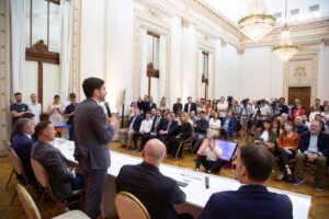 La presentación se desarrolló este viernes en la Sede de Gobierno en Rosario, y contó con la presencia de los ministros de Gobierno e Innovación Pública, Fabián Bastia; de Desarrollo Productivo, Gustavo Puccini; de Obras Públicas, Lisandro Enrico; de Ambiente y Cambio Climático, Enrique Estévez; y del secretario de Coordinación de Transformación Digital, Mauricio Basso; entre otras autoridades asistentes.