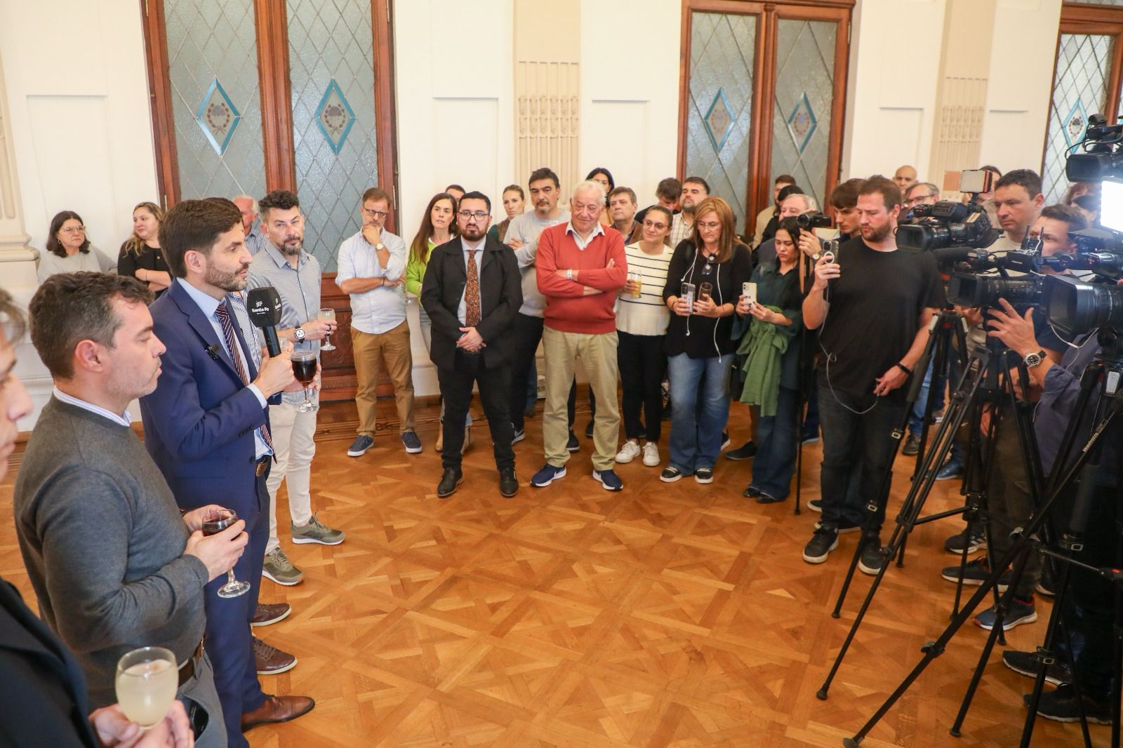 El gobernador de la provincia de Santa Fe, Maximiliano Pullaro, junto con el secretario de Comunicación, Luis Persello, encabezaron este viernes un agasajo a la prensa en el marco de la conmemoración del Día del Periodista.