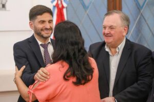 También estuvieron presentes los ministros de Gobierno e Innovación Pública, Fabián Bastia, y de Igualdad y Desarrollo Humano, Victoria Tejeda; el secretario General de la Gobernación, Juan Cruz Cándido; y las secretarias de Educación, Carolina Piedrabuena, y de Gestión Territorial Educativa, Daiana Gallo Ambrosis.
