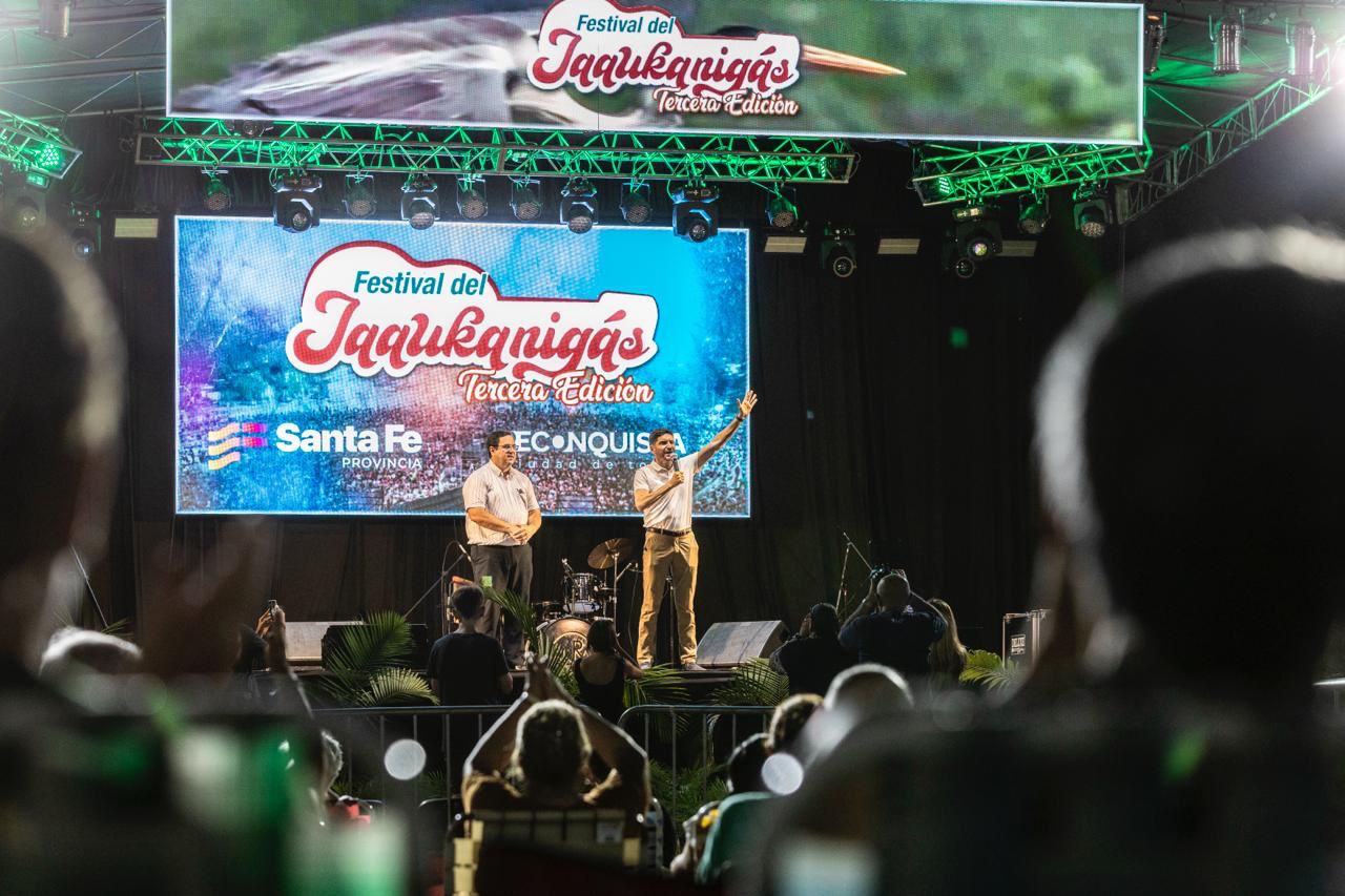 El gobernador Maximiliano Pullaro participó este viernes del 3° Festival del Jaaukanigás, que se desarrolla hasta el 4 de enero en el Anfiteatro Municipal de Reconquista, y recorrió distintas obras de infraestructura educativa, vial y productiva que el Gobierno Provincial ejecuta en el departamento General Obligado.