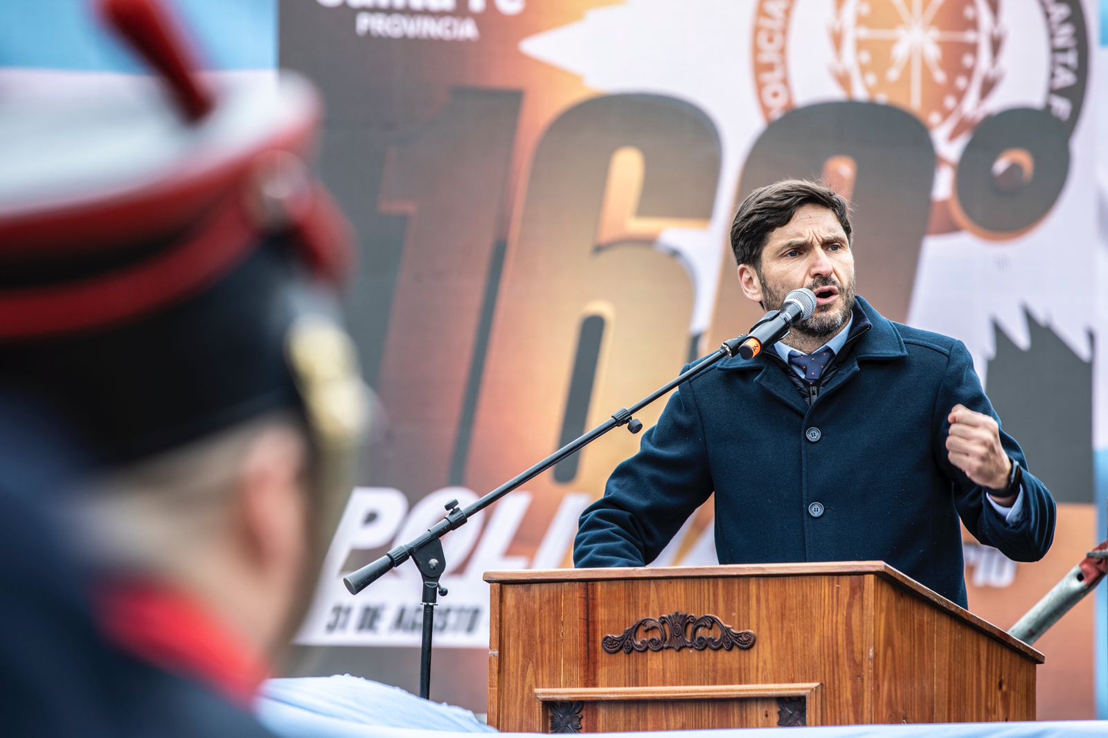 El gobernador de la provincia, Maximiliano Pullaro, y el ministro de Justicia y Seguridad, Pablo Cococcioni, encabezaron este sábado el acto en conmemoración por el 160° aniversario de la institucionalización de la Policía provincial, que incluyó un desfile de las fuerzas. La actividad se llevó a cabo en el Parque Federal de Santa Fe.