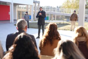 Durante el acto, el mandatario destacó que “hoy, en el momento más difícil para administrar los recursos del Estado, en Santa Fe mostramos que estamos de pie, que hacemos obra pública a pesar de los recortes y que apostamos a la educación”. En ese sentido, subrayó: “Estamos convencidos de que la infraestructura es clave. Por eso lanzamos diferentes programas educativos, como el de construcción de nuevas escuelas. En esta gestión vamos a hacer 50 edificios como este en toda la provincia, de los cuales ya terminamos 17”. Además, mencionó el Programa 1000 Aulas, remarcando que “había muchos establecimientos con infraestructura muy deteriorada, donde se dictaban clases en bibliotecas o comedores. Eso no está bien si queremos calidad educativa”.