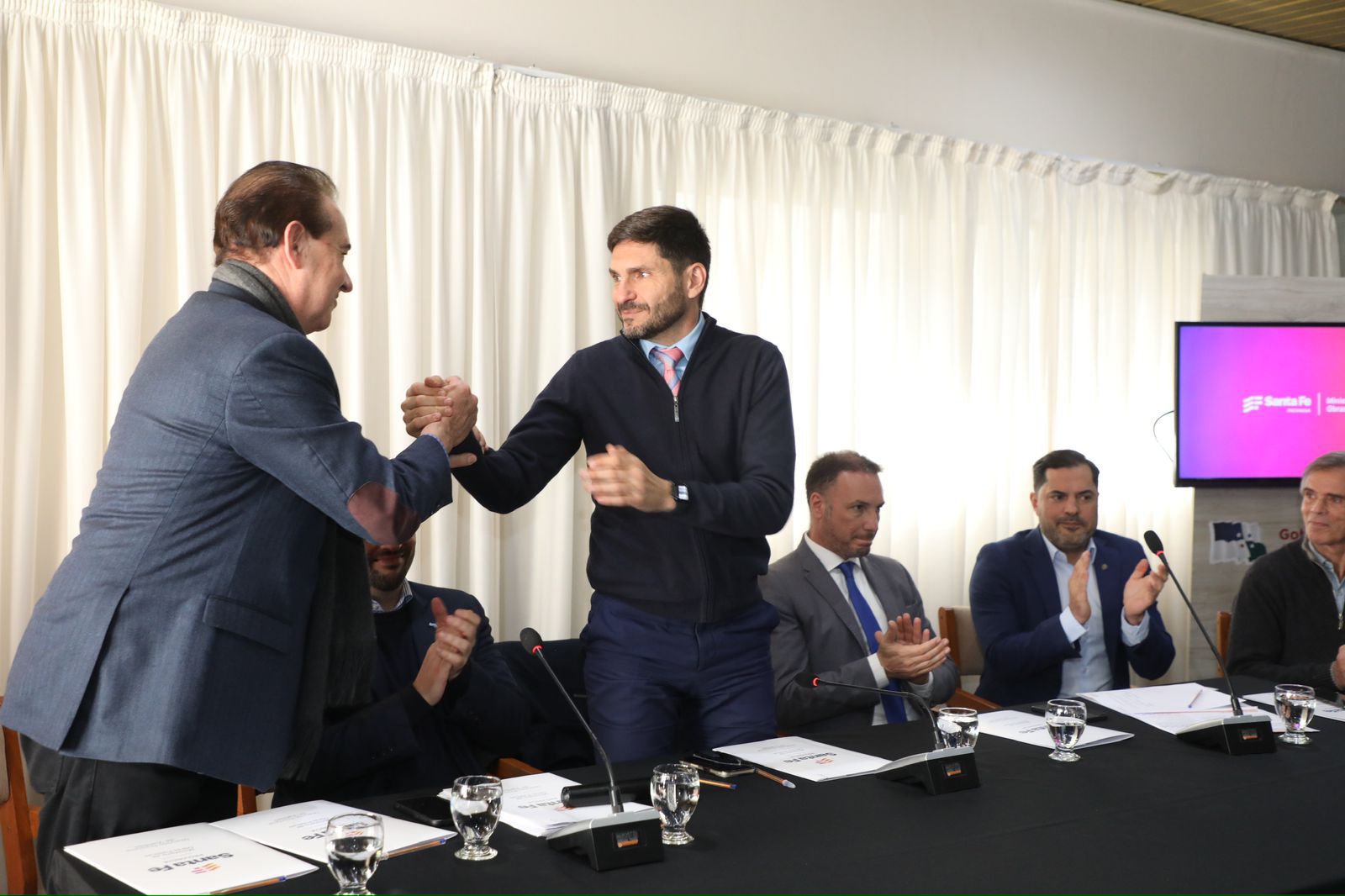 En su discurso, Pullaro recordó que al asumir el cargo “nos encontramos con una provincia con un déficit fiscal muy grande y con mucho desorden en sus cuentas, en sus deudas, y trabajamos mucho para poner orden. Seis meses después, hemos logrado el equilibrio financiero y, de este modo, Santa Fe es una de las pocas provincias del país, sino la única, que continúa un plan de obra pública a un ritmo casi normal”.