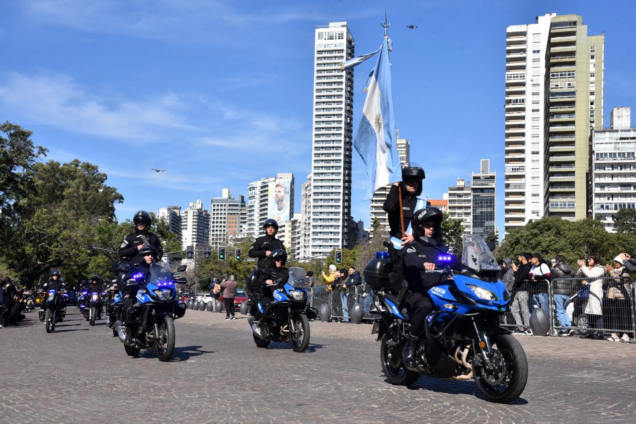 El gobernador de Santa Fe, Maximiliano Pullaro y el ministro de Justicia y Seguridad, Pablo Cococcioni, encabezaron este martes el acto en conmemoración por el 170° aniversario de la creación de la Policía de Rosario. La actividad se realizó en una de las colectoras frente al Monumento a la Bandera, e incluyó el desfile de las diferentes fuerzas que integran la Policía de Santa Fe.
