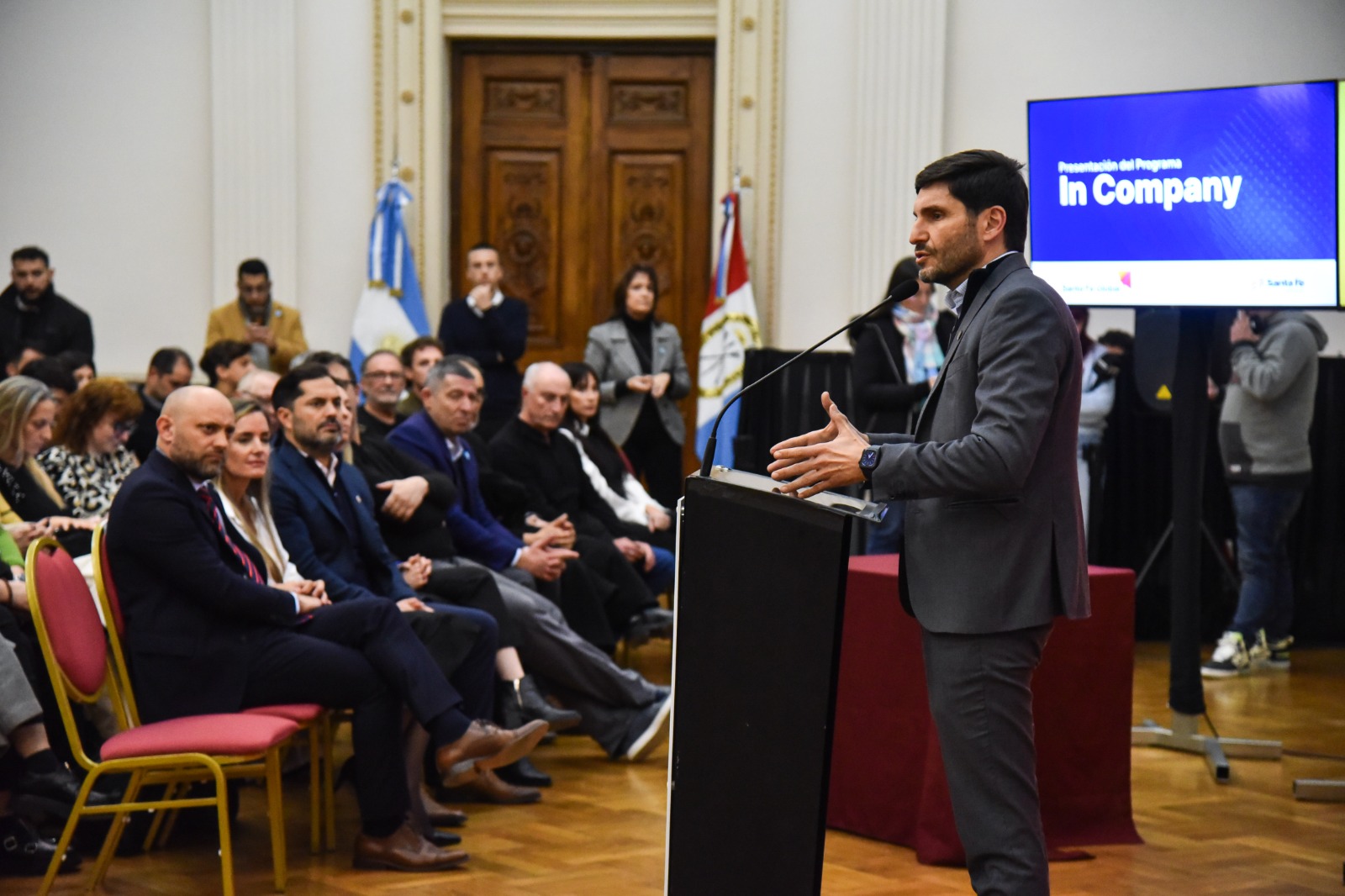 El gobernador Maximiliano Pullaro encabezó este viernes la firma de un convenio marco con 133 empresas y 35 asesores técnicos que brindarán asistencia en Comercio Exterior para dar inicio al Programa In Company. Dicho programa tiene como objetivo duplicar el número de empresas exportadoras, pasando de 783 a 1500, así como también asistir a empresas santafesinas en su proceso de internacionalización, brindar asistencia técnica en el proceso de apertura de nuevos mercados e instalar en el territorio profesionales formados en Comercio Exterior.