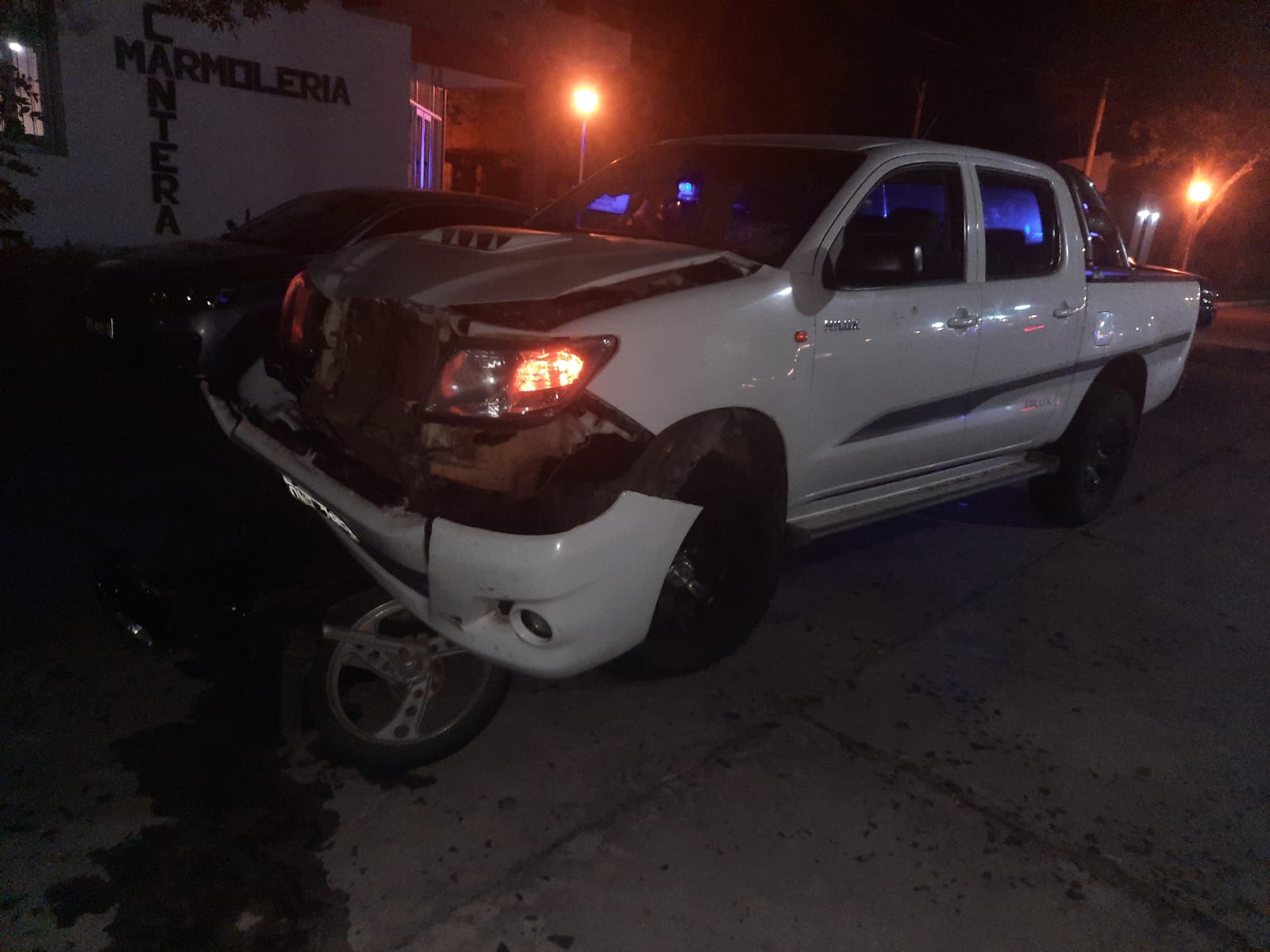 Arribados por causas que se tratan de establecer, se vieron involucrados la camioneta TOYOTA HILUX, conducida por Un hombre, mayor de edad, y la motocicleta GUERRERO TRIP 110 c.c., guiada por Un vecino de éste medio.