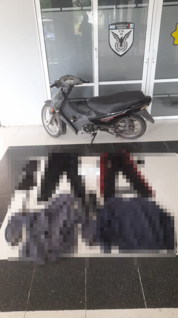 La motocicleta fue hallada oculta en malezas de una zona rural, con prendas de vestir y dos pasa montañas en su interior. Según la investigación, la motocicleta fue sustraída en horas de la madrugada y utilizada para cometer un robo al kiosco “TIK TOK”, propiedad de una mujer de 36 años.