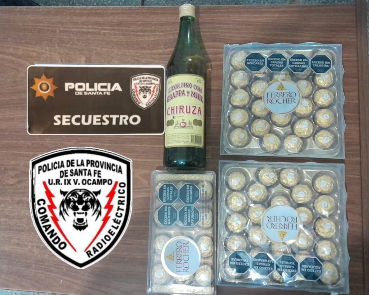 La policía de Villa Ocampo logró recuperar mercaderías sustraídas de un Maxikiosco ubicado en calle Belgrano 1525. Los elementos recuperados incluyen tres cajas de bombones Ferrero Rocher y un licor fino con grapa y miel marca Chiruza.