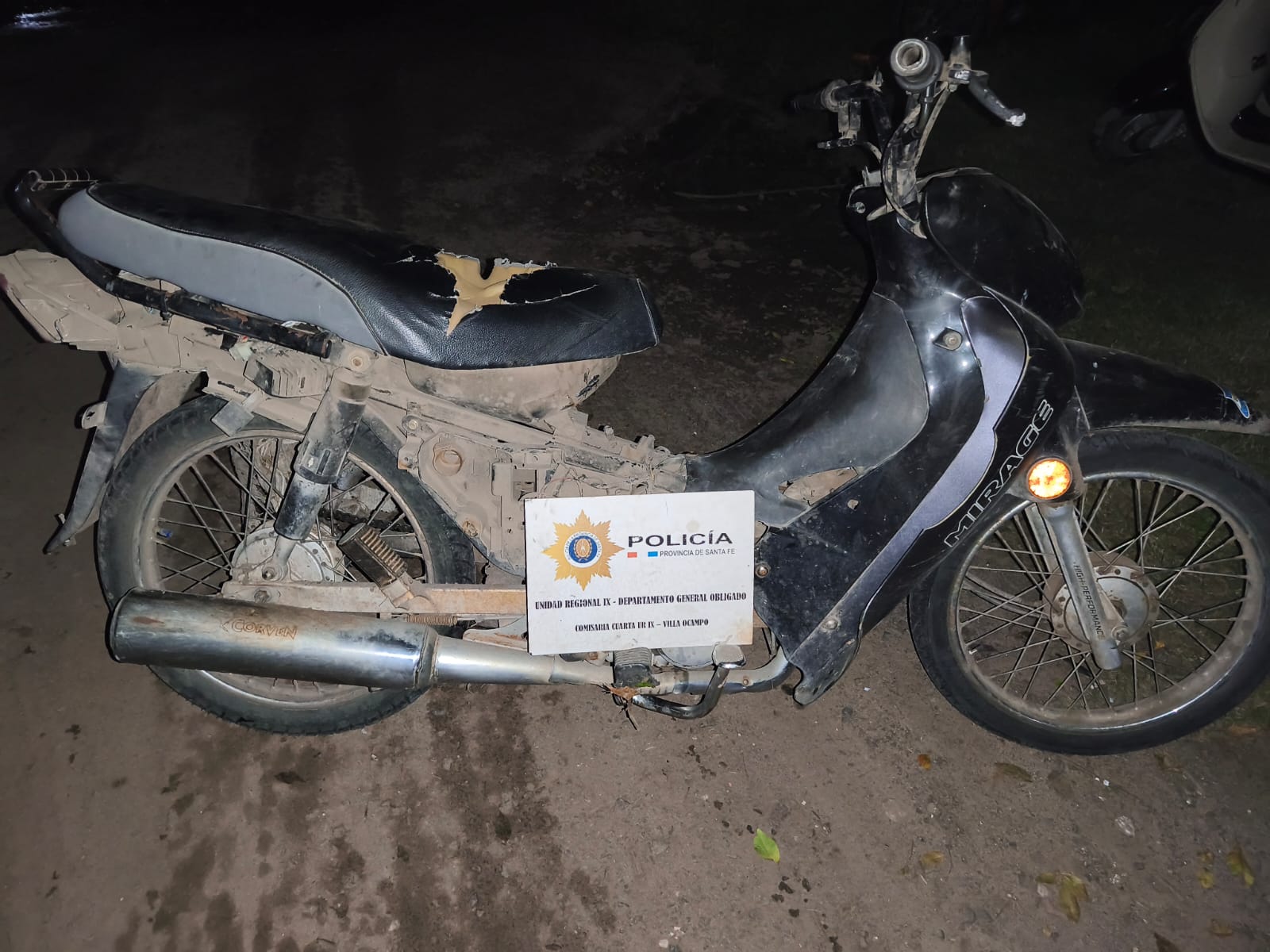 La Comisaría IV UR IX recuperó una motocicleta marca Corven, modelo Mirage, el 11 de abril de 2025, a las 09:30 horas. La moto había sido denunciada como robada el mismo día y pertenecía a un hombre de 63 años domiciliado en Santa Ana, Avellaneda.