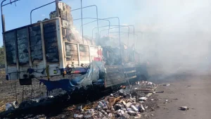 Una situación por demás insólita generó por arrastre el incendio del camión de la empresa Snaider que se incendió a la vera de la Ruta 11. De acuerdo con información brindada por la Policía de Chaco, un agente de la fuerza de seguridad que prestaba funciones en la casilla de acceso al paraje María Sara, se acercó a ayudar en su vehículo particular. El agente E.F.C. (quien integra la policía caminera) llegó a prestar auxilio y dejó estacionado su automóvil particular, un Renault Clio patente IPZ 436, a unos 800 metros del camión que se incendiaba.