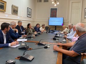 El diputado provincial Dionisio Scarpin mantuvo este miércoles una reunión con Juan Pablo Durando, recientemente designado presidente de la Bolsa de Comercio de Santa Fe, y con los integrantes de la comisión directiva de la entidad. El objetivo fue consolidar vínculos institucionales y avanzar en una agenda compartida que promueva el desarrollo del norte santafesino a través del diálogo y el trabajo conjunto.