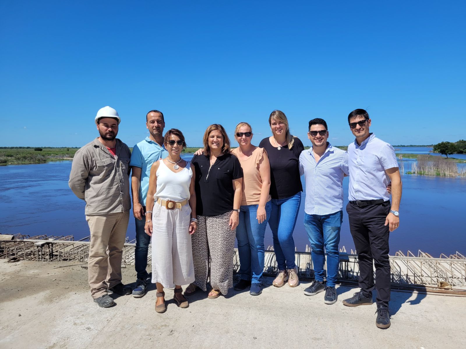 Parte del equipo de gestión junto a la Vicerrectora, Dra. Larisa Carrera; y la Secretaria de Fortalecimiento Territorial, Esp. Arq. Sara Lauría de la UNL en su vista en el mes de marzo a Villa Ocampo.