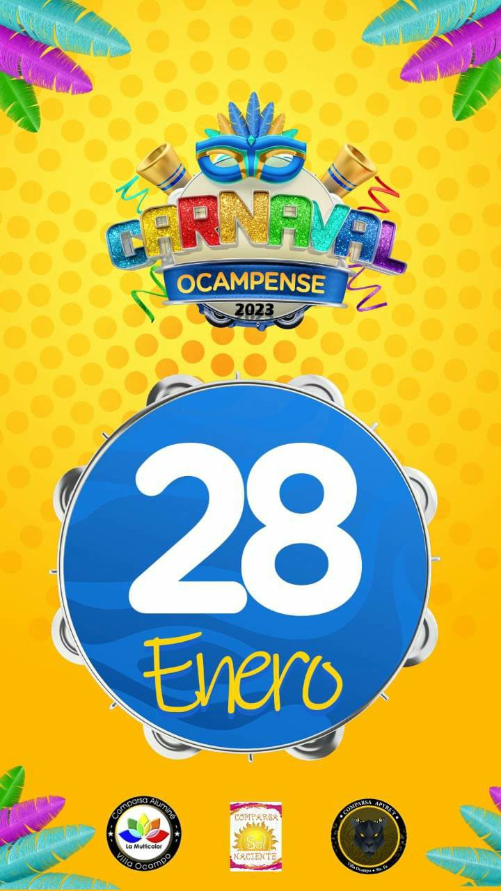 La Secretaría de Cultura y Comunicación de la Municipalidad de Villa Ocampo invita a la segunda noche del “Carnaval Ocampense 2023”, que se va a llevar a cabo este sábado 28 de enero, a partir de las 21:00 Hs. en el Corsódromo de la Av. Independencia Nacional, bajo la organización conjunta por las comparsas locales Aluminé, Sol Naciente y Apyre´y.