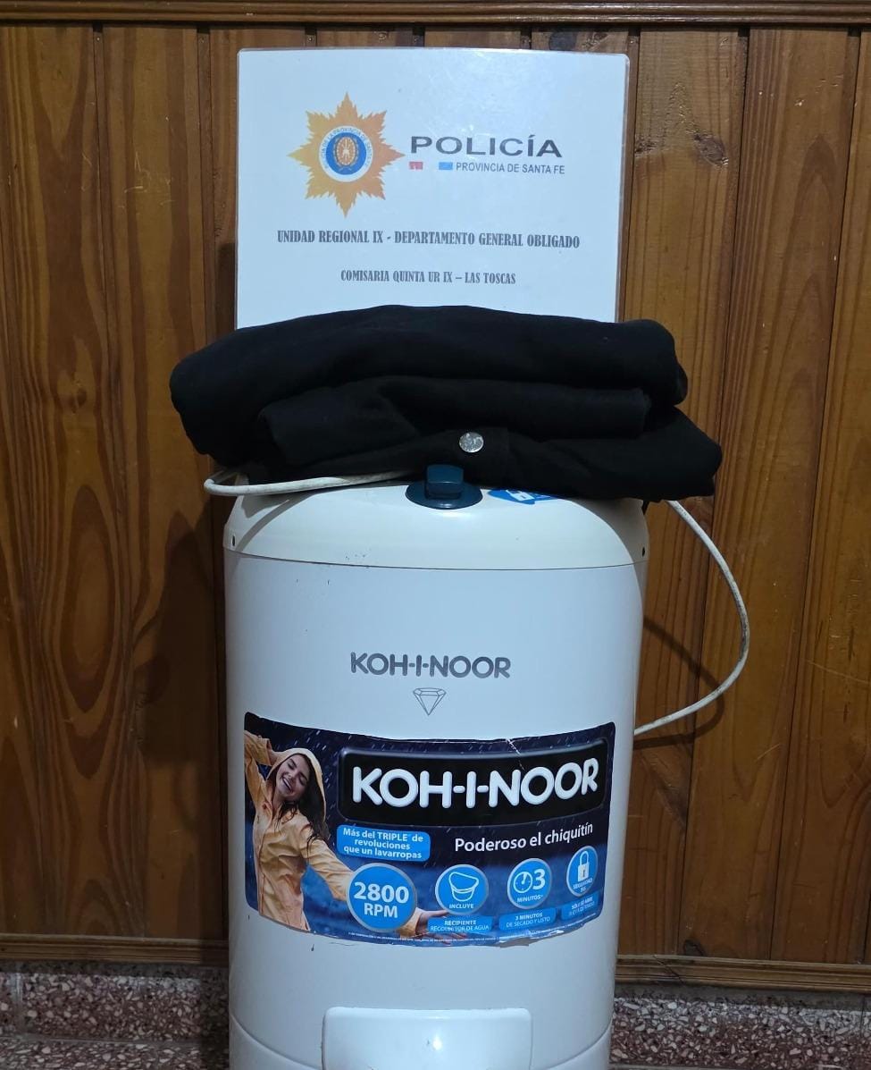 Posteriormente, un vecino se presentó espontáneamente en la dependencia policial manifestando que, durante la tarde, había adquirido de buena fe un secarropa a un conocido, por lo que hizo entrega voluntaria del artefacto.