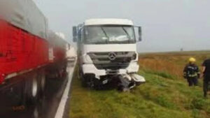 Por causas que se investigan, el camión cerealero vacío Mercedes Benz Axor2036, conducido por un hombre de 63 años, domiciliado en Vicuña Mackenna, colisionó frontalmente contra el automóvil Fiat Regata que conducía José Luis Bazán de 31 años de edad, quien murió en el acto.