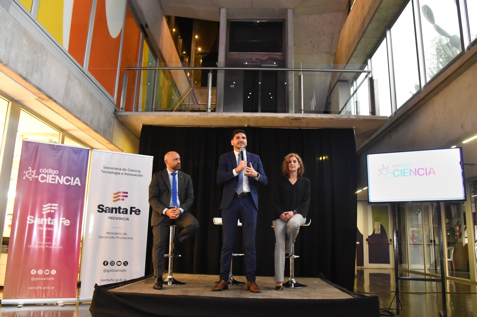 Con el objetivo de promover la cultura científica, técnica e industrial en todo el territorio de la provincia Santa Fe, el gobernador Maximiliano Pullaro, el ministro de Desarrollo Productivo, Gustavo Puccini, y la secretaria de Ciencia, Tecnología e Innovación, Erica Hynes, presentaron este lunes el programa Código Ciencia.