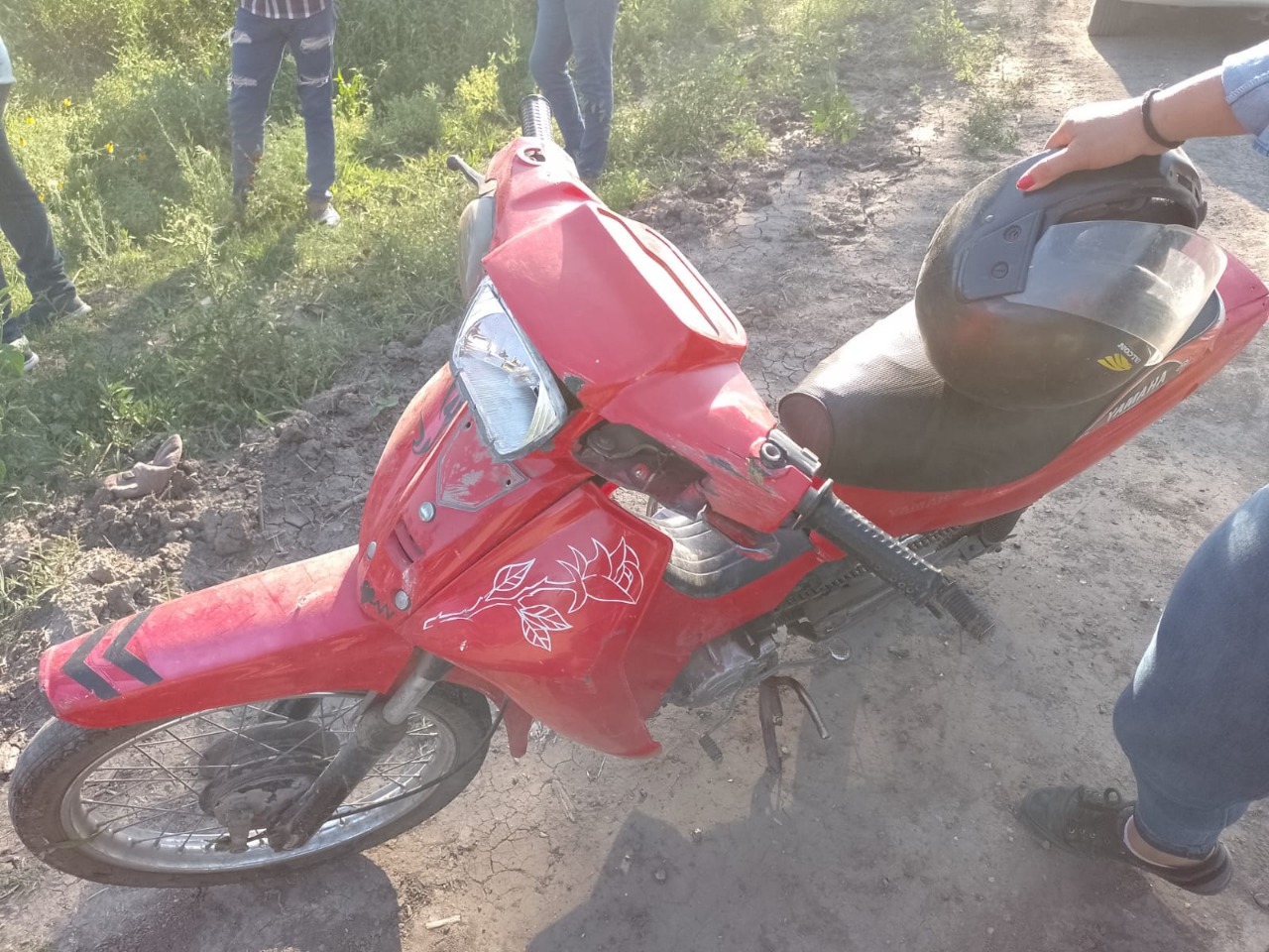 Donde por causas que se tratan de establecer se vieron involucrados dos motocicletas una YAMAHA CRYPTON 110 c.c., guiada por C.H. (32), vecina de ese medio y una JINHENG 125 c.c., conducida por E.L. (23), domiciliada en esa localidad, resultando ésta última en mención, derivada al Samco local. Se dio conocimiento al Fiscal en Turno.