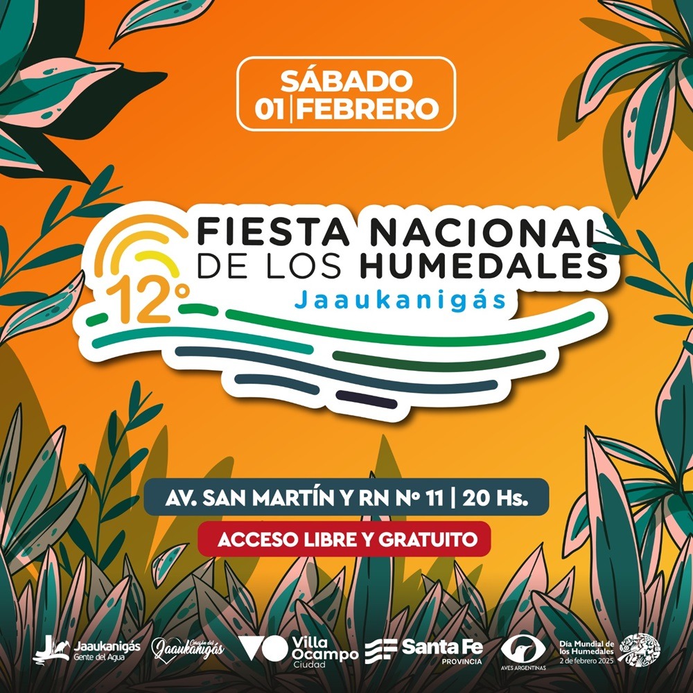 Esta fiesta, que combina naturaleza, cultura y comunidad, es una invitación abierta a compartir en familia y amigos. Villa Ocampo te espera este 1 de febrero para vivir la 12º Fiesta Nacional de los Humedales “Jaaukanigás”, una celebración que resalta la riqueza del corazón del Jaaukanigás y el orgullo de sus tradiciones.