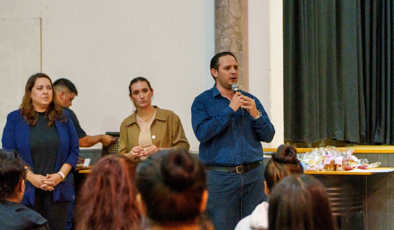El intendente Cristian Marega integrantes de su equipo de gestión, hicieron entrega de los certificados de capacitación en oficios del programa “Nueva Oportunidad” a 60 jóvenes que cursaron talleres de barbería, maquillaje, huerta y panificación.