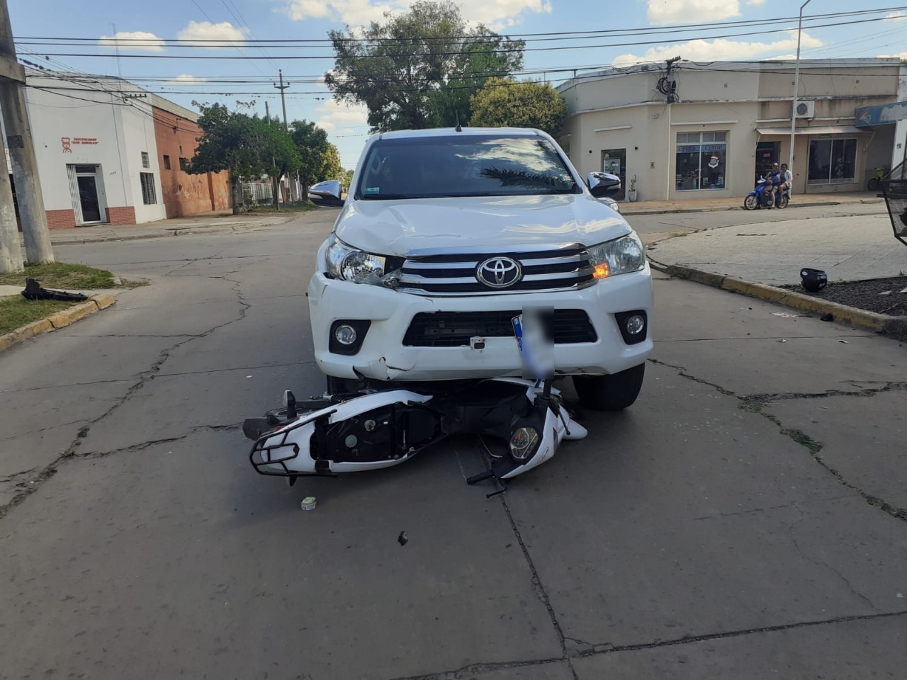 Una motocicleta HONDA WAVE, guiada por A.G. (45), domiciliada en ese medio y una camioneta HILUX TOYOTA, conducida por M.A.M. (63), vecina de esa localidad, resultando ocupante del birrodado, derivada al Hospital Central Reconquista. Se dio conocimiento al Fiscal en Turno, labrándose actuaciones caratuladas a prima facie LESIONES GRAVES EN ACCIDENTE DE TRÁNSITO.