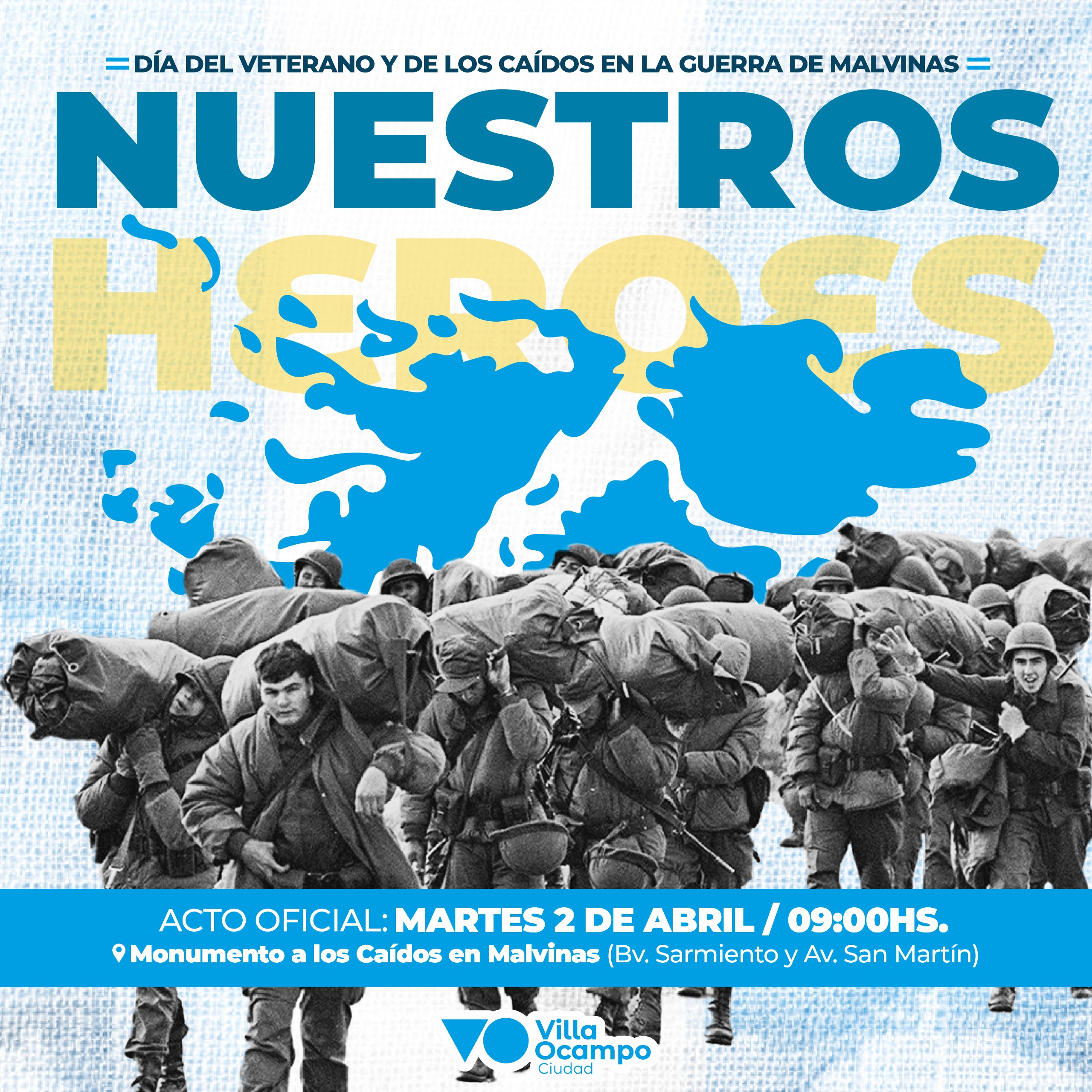 El intendente de nuestra ciudad, Cristian Marega, invita a toda la comunidad a participar del Acto Oficial por el Día de los Veteranos y los Caídos en la Guerra de Malvinas. El mismo se desarrollará el día martes 2 de abril, a las 9:00hs., en el Monumento a los Caídos en la Guerra de Malvinas (Av. San Martín y Bv. Sarmiento).